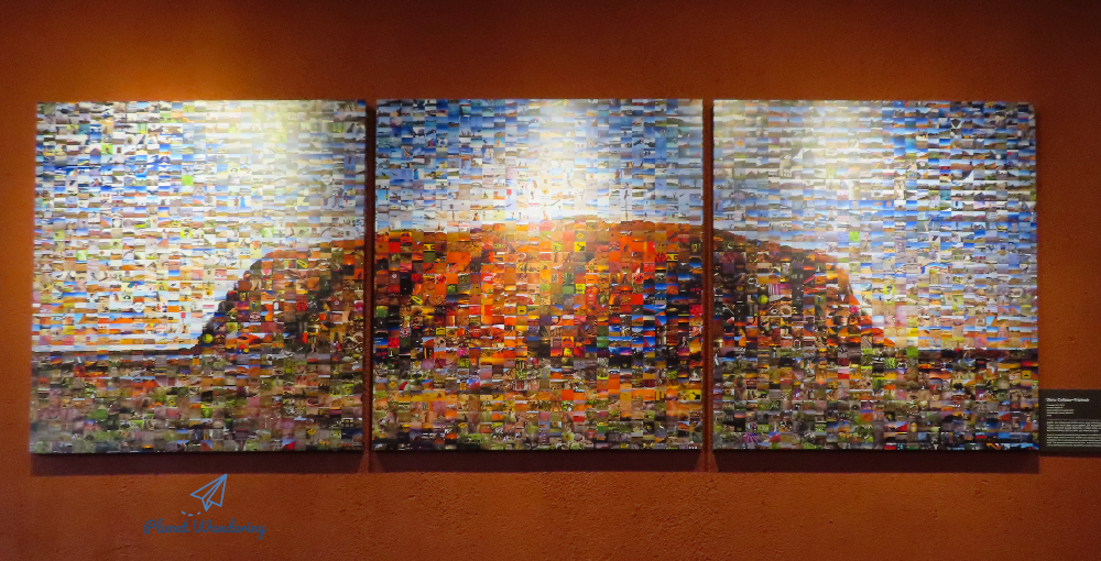 아웃백 스테이크하우스 센텀시티점은 창가쪽으로 손님을 먼저 안내하고, 그 다음으로 중앙 홀에 손님을 안내하죠. 막 점심시간이 시작되는 타이밍인데 손님이 제법 많습니다. 아웃백은 호주의 문화를 모티브로 만들어진 패밀리 레스토랑이라 곳곳에 호주의 느낌이 가득합니다. 멀리 주방 카운터도 시드니의 하버브리지를 닮았고 벽 한쪽에는 호주 사막에 있는 유명 관광지 울룰루를 콜라쥬로 표현한 작품이 걸려있네요. 자세히 들여다보면 아웃백 로고를 포함하여 호주의 다양한 동식물과 사람들의 사진을 조각조각 이어붙여 만들었습니다. 대단하네요~.