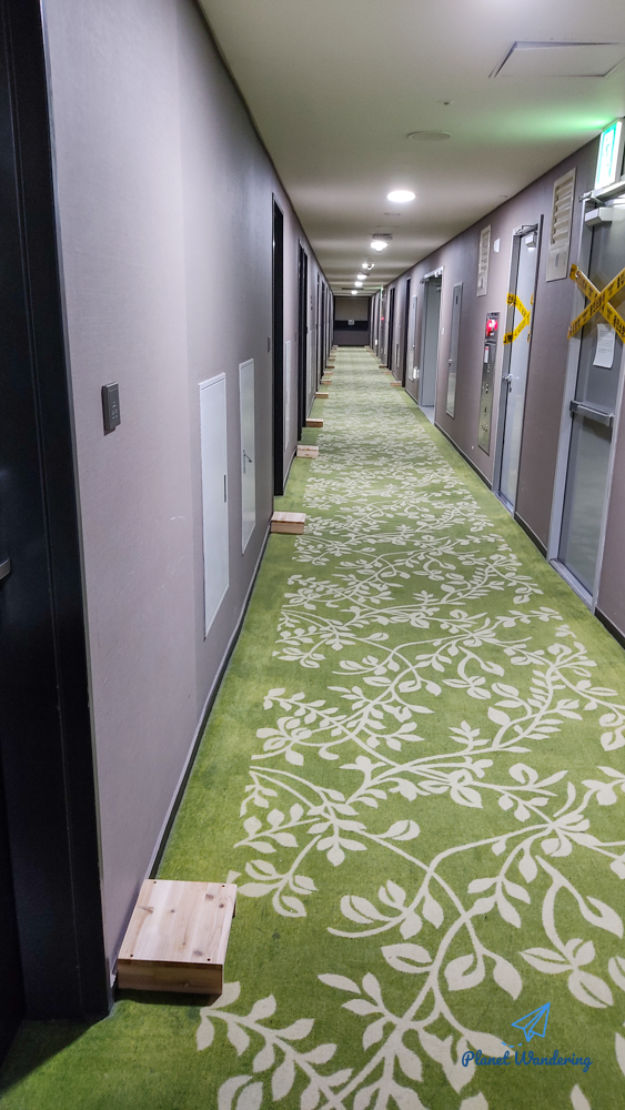 작년 11월 격리를 했던 부산의 커넥트부산호텔과 크게 다르지 않은 분위기입니다. 하나 더 배려로 느껴졌던 것은 문 앞으로 배달되는 도시락을 올려놓는 나무 선반이 있었다는 점입니다. 물론 비닐봉지에 포장되어 오지만 바닥에 놓지 않고 나무판 위에 올려놓는 작은 정성이 고맙게 느껴졌습니다.