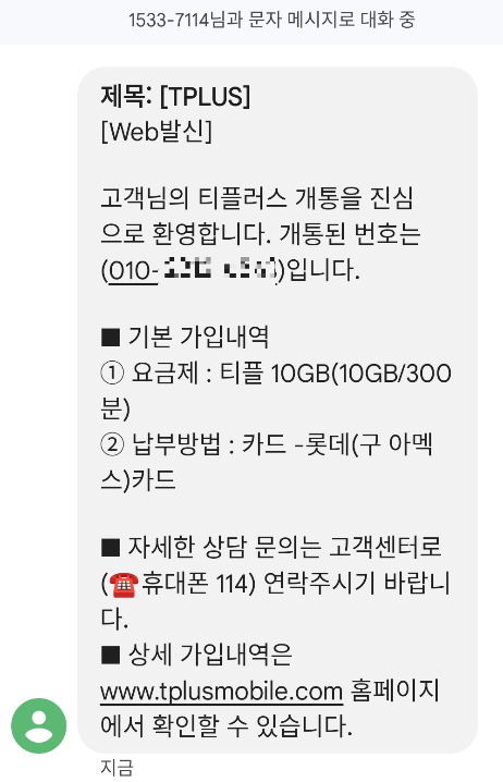 티플러스 모바일 고객센터에서 가입내역 정보 문자와 함께 데이터 로밍이 기본적으로 차단되어 있다는 문자도 함께 왔습니다. 이제 지금까지 사용하던 12,000원짜리 3,000분 통화 + 4기가바이트 데이터에서 벗어나 8,990원짜리 300분 통화 + 10기가바이트 데이터 상품으로 데이터를 넉넉하게 사용할 수 있게 되었습니다. 물론 요금도 25% 절약할 수 있게 되었습니다.