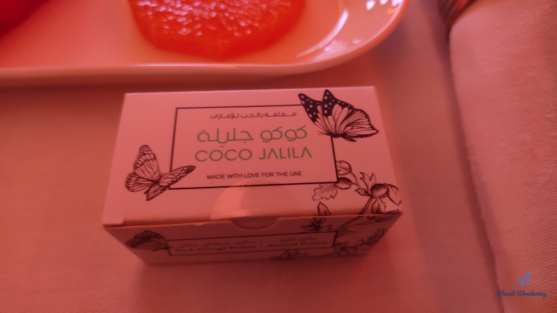 스테이크는 양이 많지 않아서 깔끔하게 먹어치웠습니다. 이번에는 후식으로 과일이 약간 나왔는데, 두바이 에미레이트 라운지에 있던 과일과 종류가 똑같습니다. 아마 같은 과일을 납품받아 나눠 쓰는 모양이네요. 함께 나온 초콜릿도 품격이 느껴져서 안 먹고 주머니에 넣었습니다. 나중에 일상으로 돌아온 후 이런 걸 하나씩 꺼내먹으면 여행 갔던 생각이 새록새록 올라오면서 기분이 좋아지거든요. 나그네가 불쌍해 보였는지 식기를 다 정리한 후 승무원 한 분이 초콜릿 한 개를 쓰윽~ 더 올려주고 가십니다. (감사해요~)