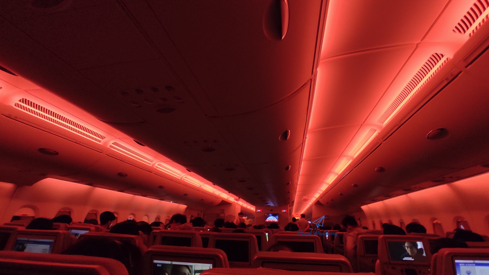 기내식 정리가 끝나고 나면, 어느 순간 기내 조명이 어두워집니다. 아침밥 줄 때까지 자라는 건데요, 이렇게 해야 시차 조절에도 도움이 되고, 승무원들도 잠시 쉴 수 있는 시간을 얻게 되죠. 그렇다고 모든 승객들이 잠을 자는 건 아닙니다. 일하는 분도 있고, 독서등을 켜고 책을 읽거나 개인 모니터로 영화를 보는 분도 있죠. 그런데 독서등은 의외로 많이 밝아서 옆자리 승객들에게 방해가 될 수 있으니 주변을 잘 살펴보시고 사용하시는 게 좋겠네요.