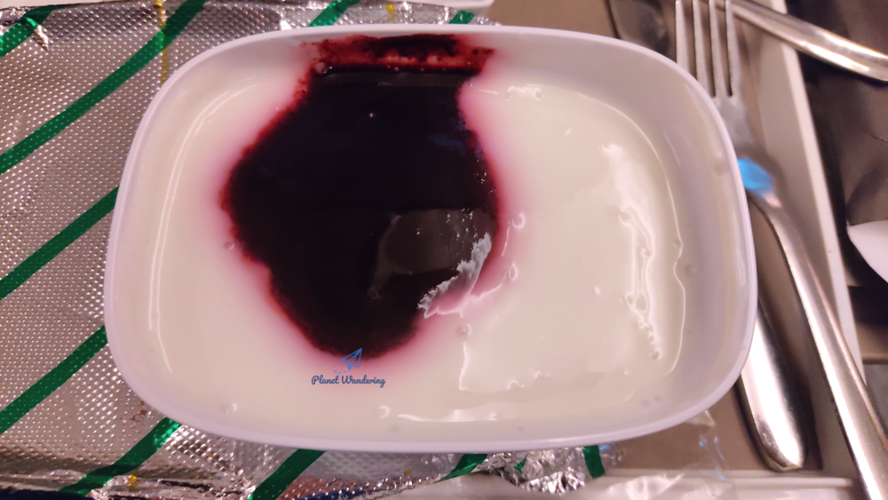 디저트로 나온 베리 무스 케이크입니다. 어디가 베리고 어디가 무스인지 잘 모르겠지만 기내식 한 끼를 마무리하는 달콤한 디저트로는 딱 좋네요. 이렇게 식사를 마치시고 잠시 기다리시면 승무원들이 식판 회수용 카트를 끌고 다니며 다 드신 기내식 쟁반을 회수합니다. 음료 컵을 따로 정리하고, 나머지는 카트 안으로 밀어 넣는데, 이왕이면 다 드신 그릇과 비닐들이 수북하게 쌓이지 않도록 정리해주시면 승무원들에게 도움이 됩니다.