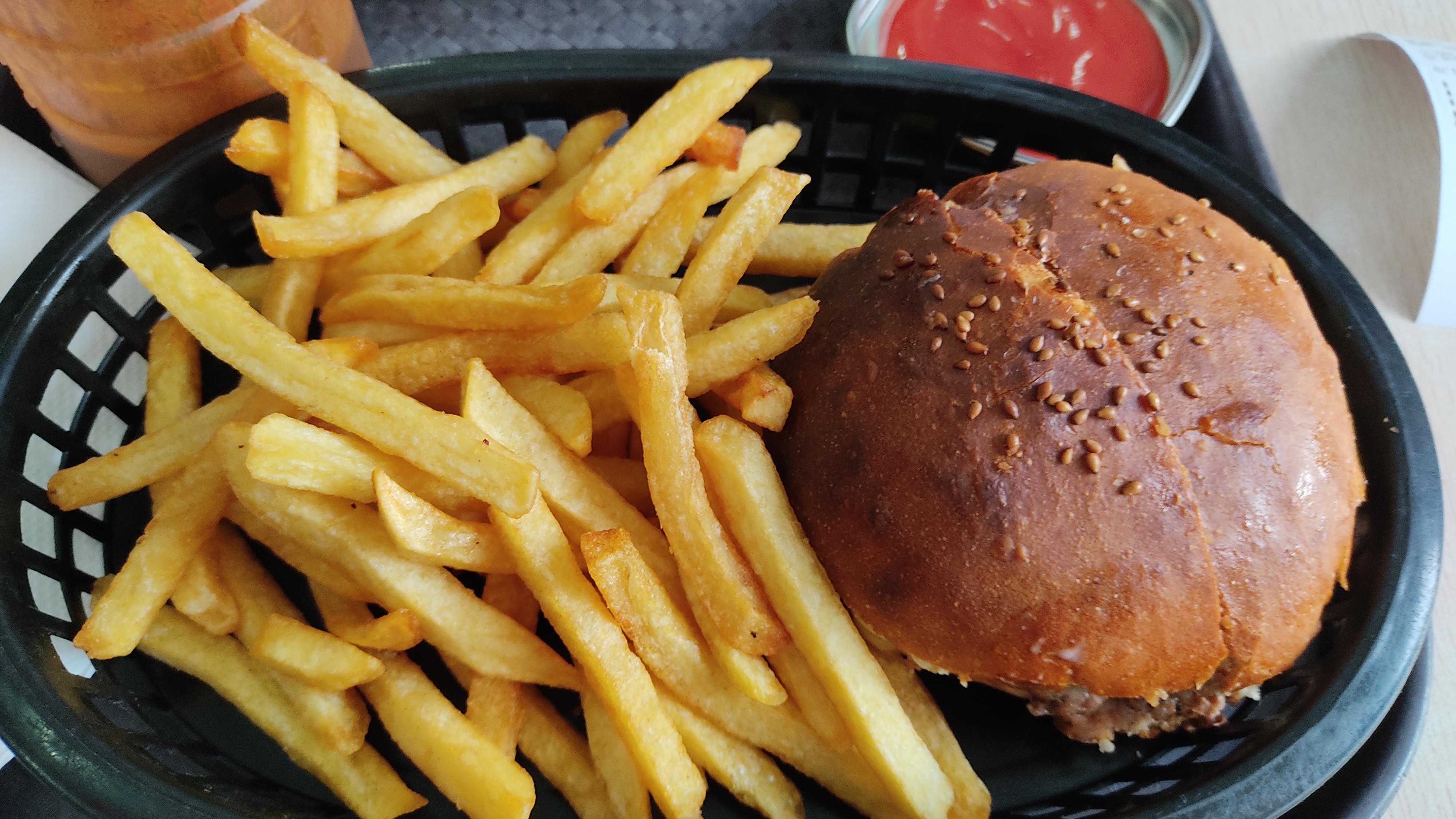 비싼 햄버거 가게라 그런지 감자튀김도 완성도가 높고 햄버거도 더 정교합니다. 그릴에 갓 구워낸 패티는 불맛도 은은하게 풍기고 고기도 충실하게 들어있네요. 역시 양이 많아서 1개를 현지인 기사와 나눠먹고 나머지 하나는 기사가 포장해 집으로 가져갔습니다.