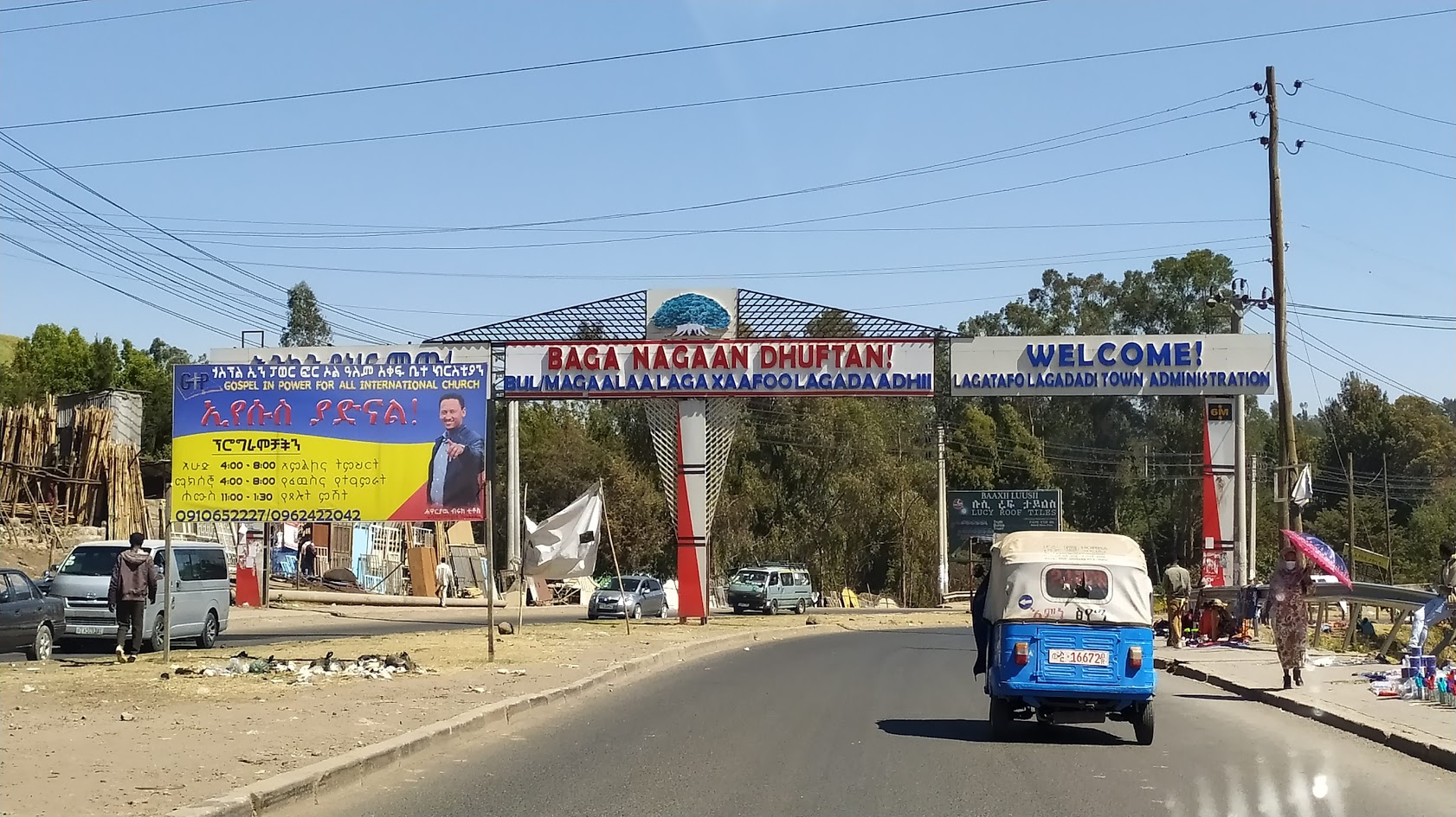 하지만 수도와 오로미아주의 경계 부근으로 나가면 이 바지즈는 서민들의 아주 중요한 교통수단 역할을 하고, 또 그만큼 수도없이 많은 바지즈가 손님을 기다리고 있습니다. 아래 사진은 아디스 아바바 시 경계를 지나 오로미아주의 첫 도시인 레가다포로 들어가는 입구입니다. 이 정도 위치가 되면 신나게 달리는 바지즈를 쉽게 찾아볼 수 있죠.