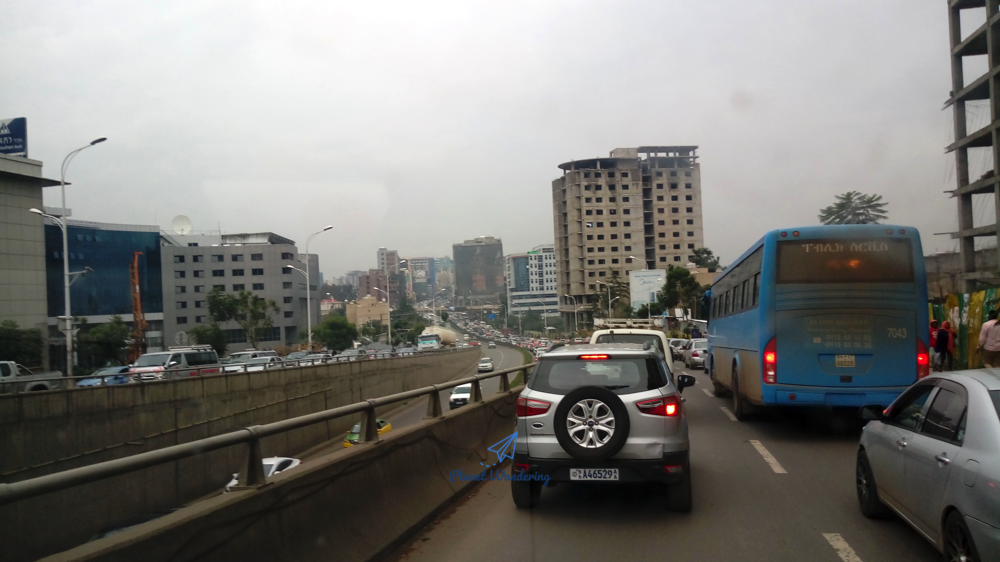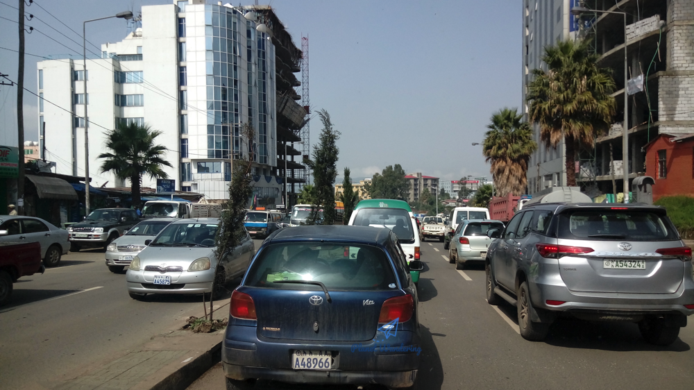 오후 늦게 번화가를 벗어나 외부로 나가기 시작하면 흙먼지가 말라붙은 도로, 아디스 아바바 근교 도시로 퇴근하는 사람들과 자동차로 혼잡이 극에 달합니다. 근교로 나가는 도로는 교통체증을 앓고 반대로 도심으로 들어오는 도로는 한산한데, 출근시간에는 그 반대 현상이 일어납니다. 때로는 가변차로 대신 역주행 차로를 하나둘 열어 소통을 촉진하기도 합니다.