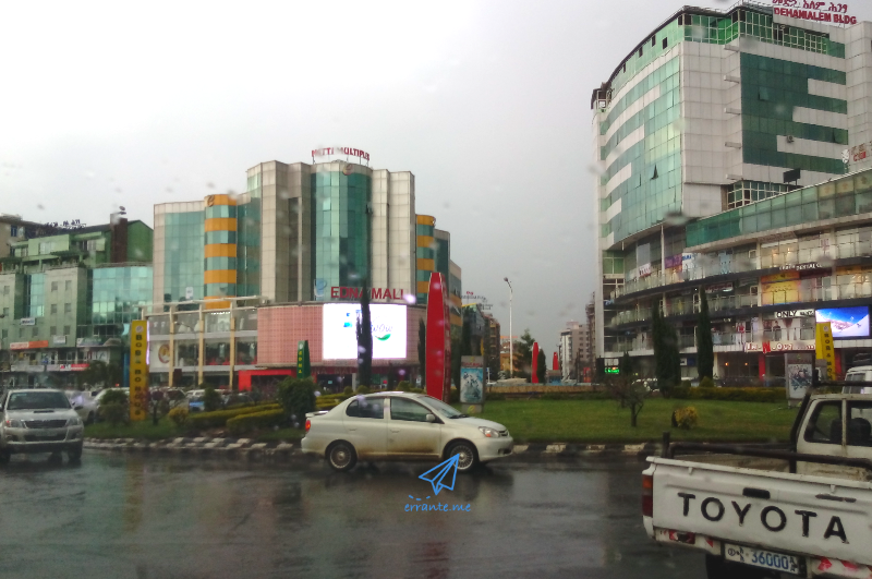 아디스 아바바의 번화가로 꼽히는 에드나몰 교차로입니다. 정면의 핑크색 건물이 에드나몰인데 백화점 같은 규모는 아니고 작은 매장들이 밀집해 있습니다. 그럼에도 에드나몰이 랜드마크로 꼽히는 건 영화관 때문입니다. 에드나몰에는 멀티플렉스라고 하기는 살짝 부족하지만 3개의 영화관이 있어 사람들이 많이 모입니다. 그리고 건물 외벽의 대형 전광판도 사람들의 눈길을 끌기 때문에 '에드나몰' 하면 아디스 아바바에 짧은 기간 머문 사람도 어디인지 알게 되죠.