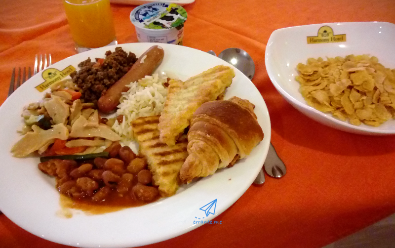 비교적 격이 높은 호텔이라 조식 오믈렛 서비스도 있습니다. 셰프 앞에서 기다리지 않아도 주문만 해두면 직원이 테이블까지 가져다줍니다. 비슷한 급의 겟팜호텔이 달걀 프라이와 오믈렛을 미리 만들어 쌓아 두는 것에 비해 하모니호텔은 바로 만들어 가져다주기까지 하니 더 좋았습니다.