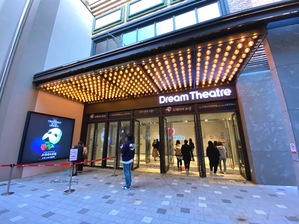 좋은 자리에 앉았음에도 무대와 거리가 제법 있어서 배우의 얼굴, 표정을 세세하게 볼 수 없었던 점도 아쉬웠고 그냥 운 탓이지만 앞자리에 앉은키가 큰 분이 있으면 무대를 많이 가리게 되는 점도 아쉬웠습니다. 드림시어터에도 공연 관람용 망원경을 빌려주는 창구가 있었는데, 망원경을 미리 준비하신다면 배우들의 표정 연기나 열창하는 모습을 더 가까이 볼 수 있을 것 같습니다. 음식을 가지고 들어갈 수는 없고 투명한 색의 액체, 즉 생수만 들고 들어갈 수 있다는 점도 기억해 두시면 좋겠네요. 사진을 찍을 수 있는 포토월이 몇 군데 있는데 모두 줄 서서 촬영하도록 되어 있습니다. 공연이 끝나고 아주 천천히 나가신다면 줄 서지 않고 사진을 마음껏 찍을 수도 있습니다.