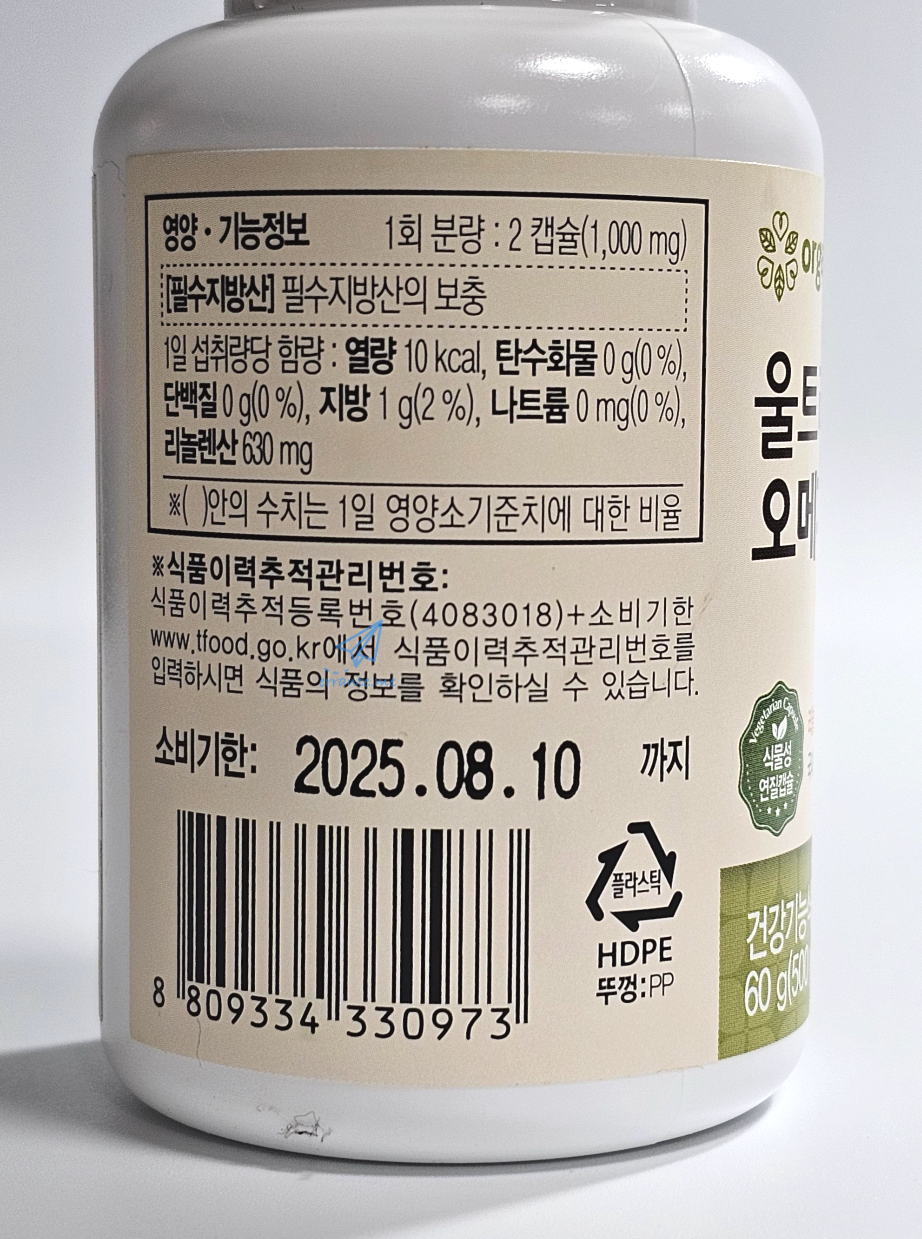 건강기능식품은 약이 아니기 때문에 단기 복용으로 눈에 띄는 효과를 체감할 수 없습니다. 멸치 한 움큼을 먹어야 섭취할 수 있는 칼슘을 칼슘건강기능식품 몇 알로 대신하는 것처럼, 식품보다 조금 더 성분을 농축했다는 느낌으로 드셔야 하죠. 강림오가닉의 울트라 페릴라 오메가 3 오일도 며칠 복용해도 몸의 변화를 감지하기는 어렵습니다. 하지만 믿을만한 무농약 원료를 사용했고, 몸에 좋은 식물성 오메가3 성분이니 선물 받은 2병은 알차게 꾸준히 먹어보려 합니다.