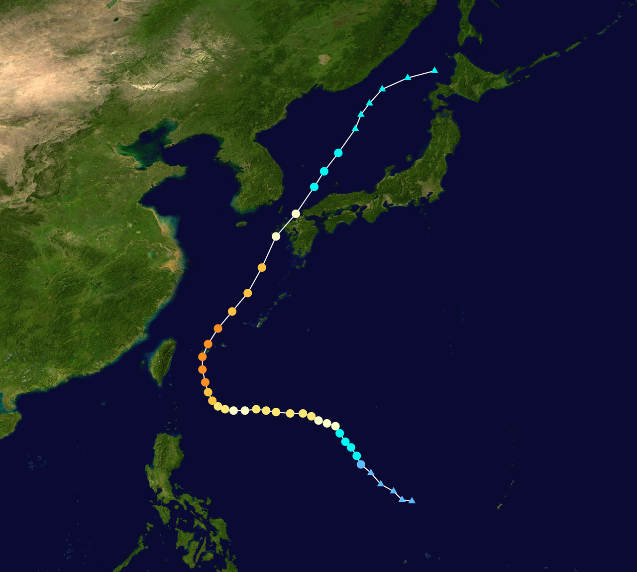 2006년 9월, 13호 태풍 산산이 이리오모테와 이시가키를 지나갔습니다. 당시 이리오모테에 사시던 할머니 한 분께서는 "태풍이 지나가던 중 파란 하늘을 봤다" 라고 하셨는데요, 태풍의 이동경로를 보면 태풍 산산의 중심이 이리오모테와 이시가키 상공을 지나간 것을 확인할 수 있습니다. 아마도 할머니께서는 태풍의 중심이 지나가는 것으로 보셨던 모양입니다.