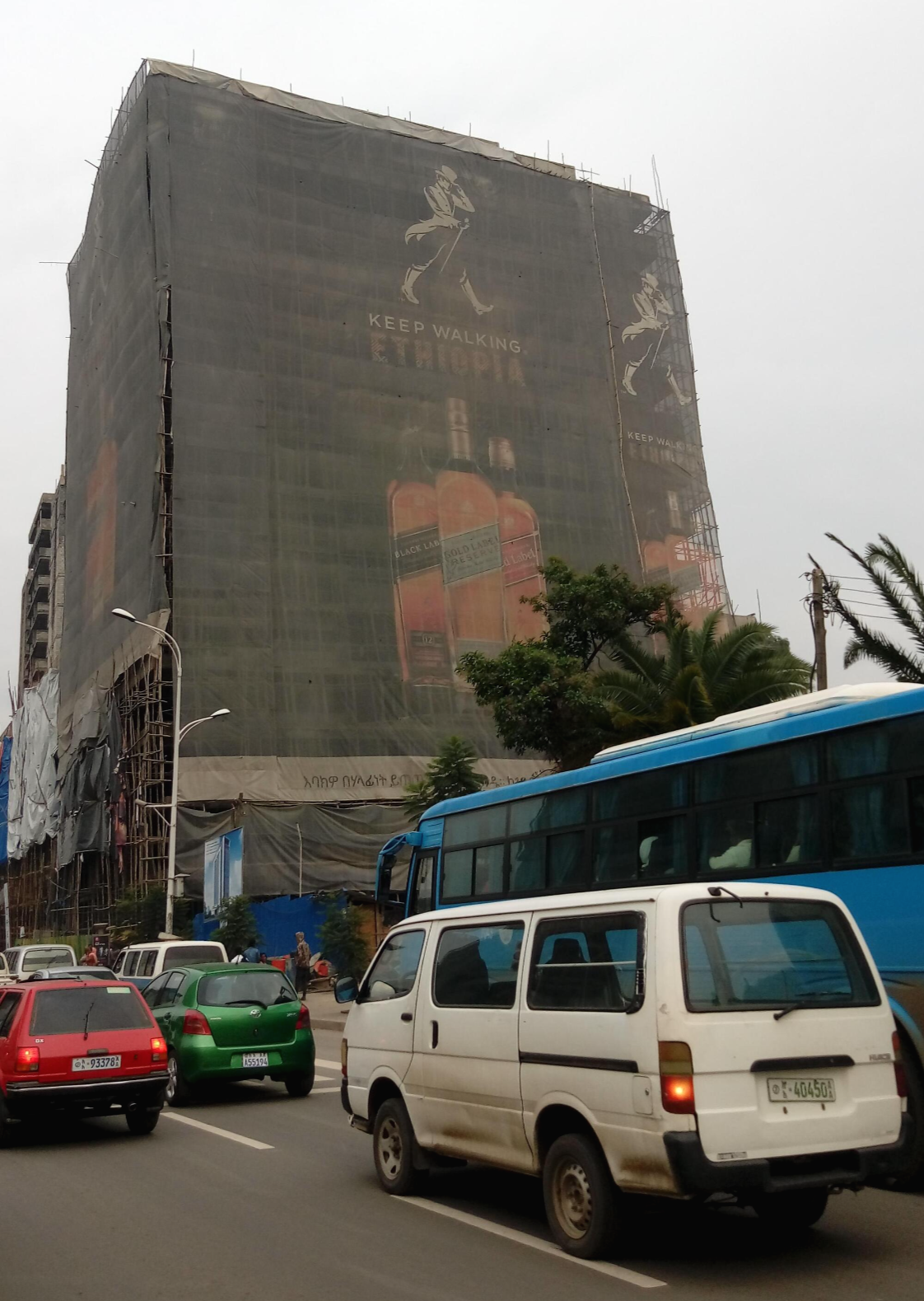 2018년 에티오피아의 수도 아디스 아바바 시내를 다니던 중, 눈에 띠는 광고입니다. 공사 중인 건물의 안전망에 걸려있던 위스키 회사 조니 워커의 광고입니다.