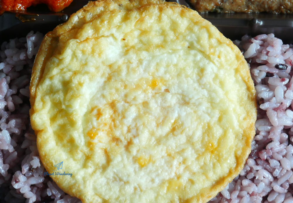 달걀프라이는 우리나라 도시락 역사에서 상징하는 바가 크죠. 오래 전 어르신들이 못 살던 시절로부터 학교에 급식 정책이 들어와 도시락이 사라지기까지, 달걀 프라이는 엄마의 정성이자 풍요로움의 상징이기도 했습니다. 한정된 공간의 도시락 반찬통에 구애받지 않고 밥 위에 얹어오는 납작한 달걀 프라이를 보면 많아야 서너 가지인 도사락 반찬에 활기를 넣어주는 보너스 원 샷 같은 기분 좋은 아이템입니다.