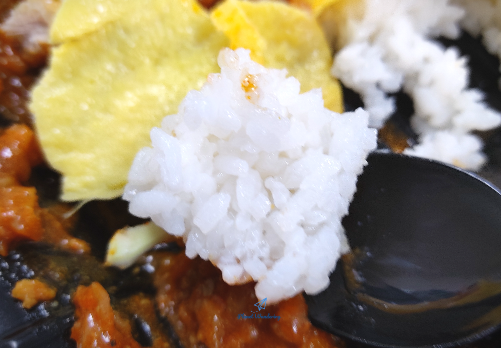 요 양배추는 조금 난해합니다. 고춧가루도 살짝 뿌려져있긴 하지만, 그냥 파릇파릇 숨이 살아있는 양배추 샐러드라 먹다가 흘리는 게 많아 조금 번거롭죠. 하지만 아삭거리는 느낌과 싱싱함은 식당에서 먹는 양배추 샐러드 못지 않게 좋게 느껴집니다. 돈까스가 조금 느끼하게 느껴질 때 입 안을 상쾌하게 리셋해주는 역할로는 충분한 것 같네요.