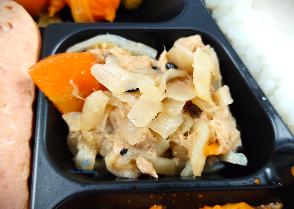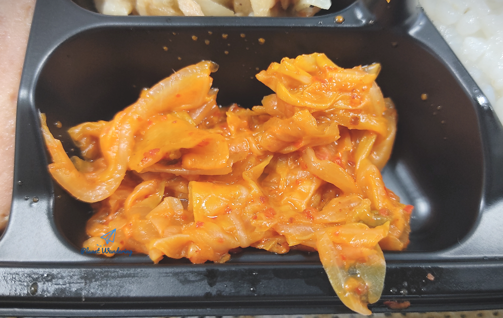 참치야채볶음도 맛있습니다. 참치와 양파, 당근에 갈릭소스를 살짝 넣고 볶은듯한데 어느 음식과 먹어도 잘 어울릴 것 같은 무난한 맛을 냅니다. 김치는 신맛이 살짝 도는 볶음김치로 맨밥과도 잘 어울립니다. CU 도시락의 김치는 모두 볶음김치라 할 수 있죠.