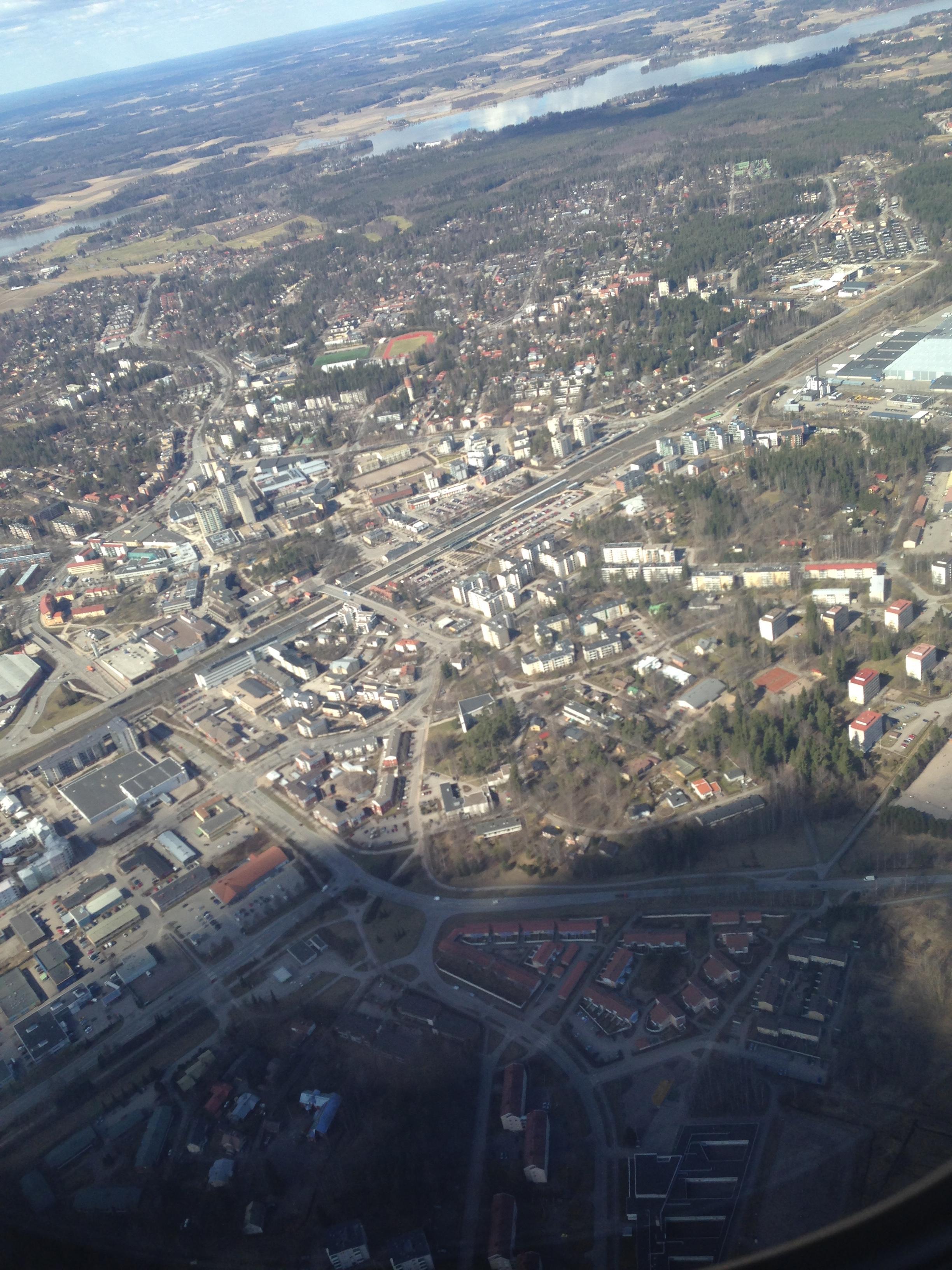 핀란드 헬싱키에 거의 다 온 모양입니다. 비행기가 고도를 낮추자, 북유럽 풍의 곧게 솟은 나무들과 호수가 한눈에 들어오네요.