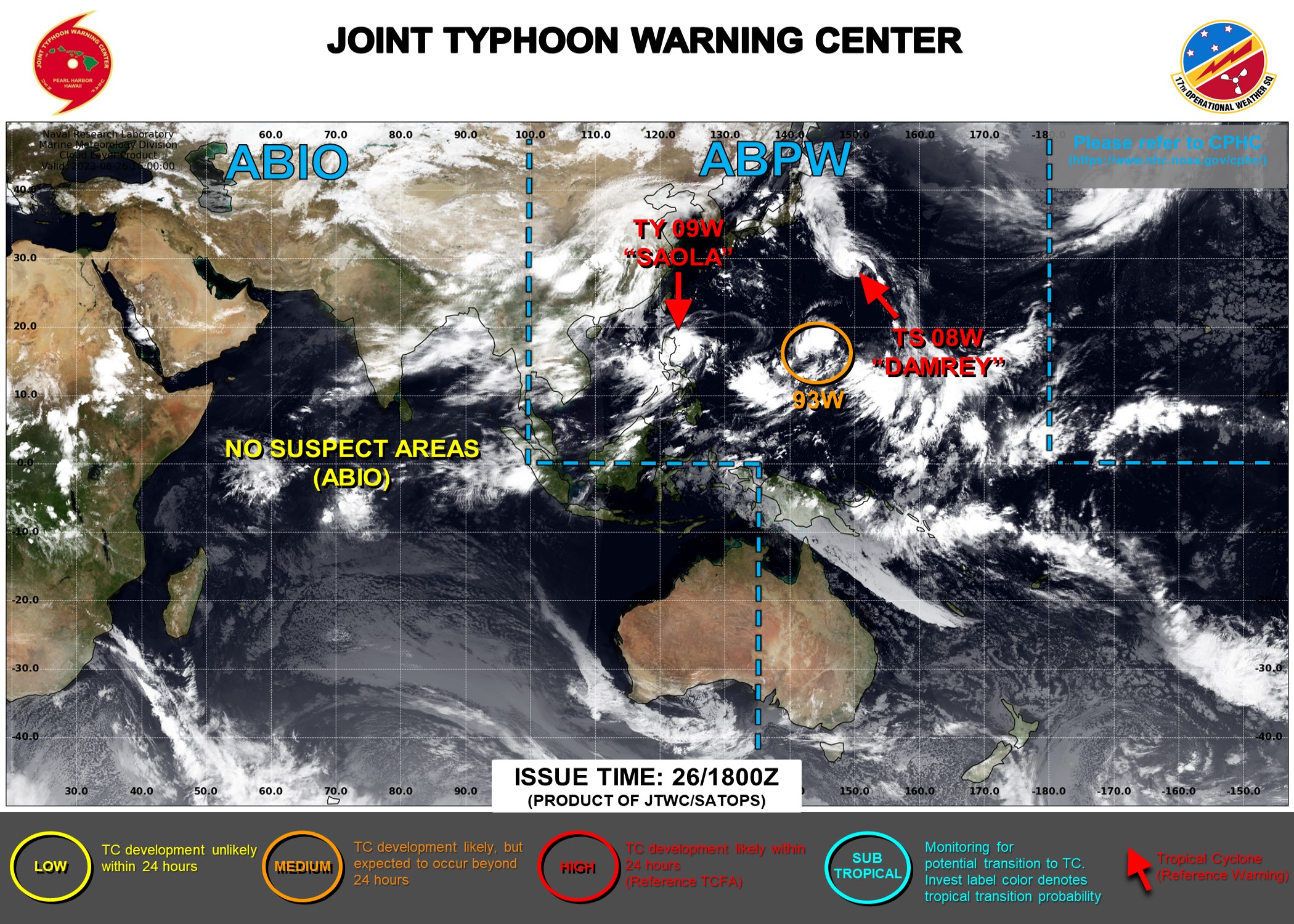 이와 함께 마리아나 제도 인근 해역에 태풍의 씨앗이라 할 수 있는 열대요란 93W가 발생하였고 점차 규모를 키워가고 있습니다. 열대요란 93W의 위치는 태풍의 요람으로 불리는 사이판, 괌 인근 해역이며 날씨 또한 태풍의 발달에 아주 좋은 조건이기 때문에 이 열대요란이 태풍으로 성장할 가능성은 매우 높습니다.이 열대요란이 태풍의 자격을 얻기 전에, 추월하여 태풍이 만들어지지 않는다면 열대요란 93W는 제11호 태풍 하이쿠이의 이름을 받게 됩니다.