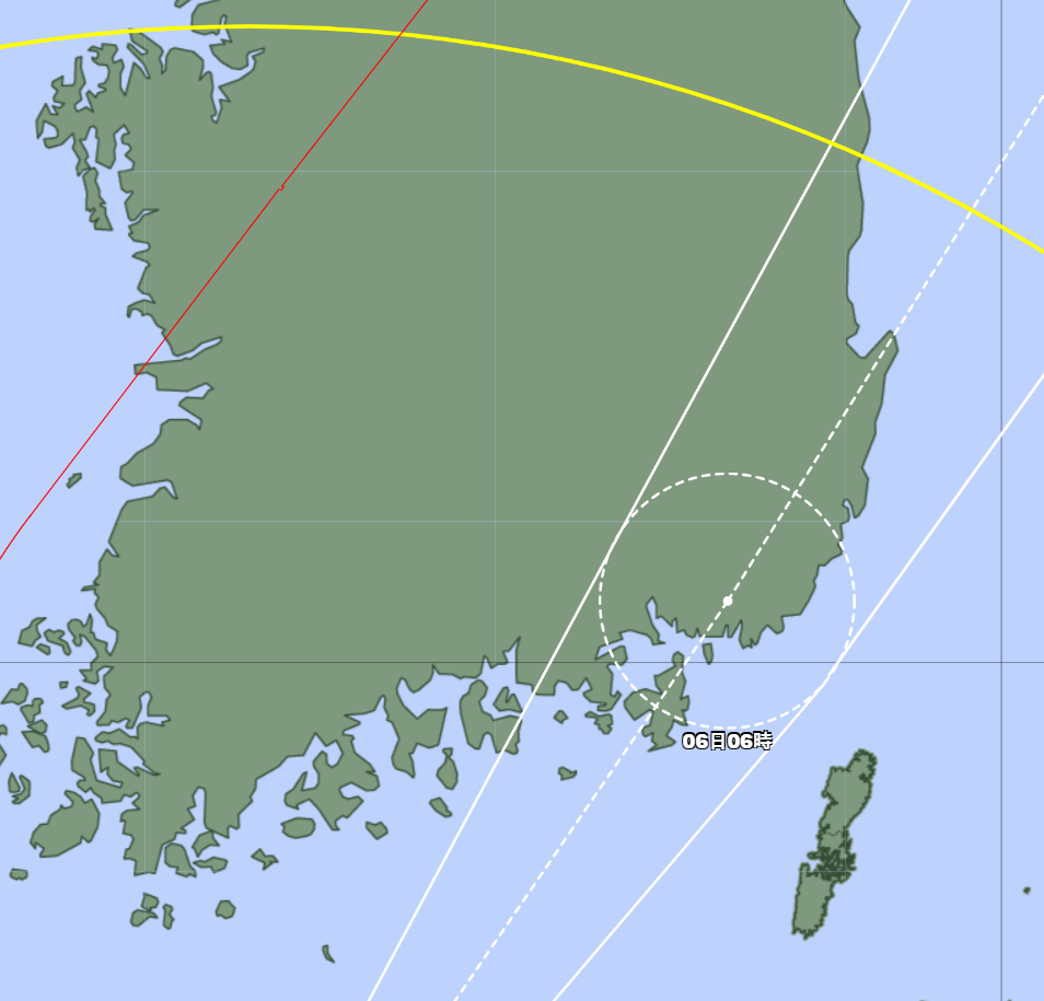 일본기상청 예보 - 6일 오전 6시 부산-김해 상륙, 오전 9시 포항 동해로 진출