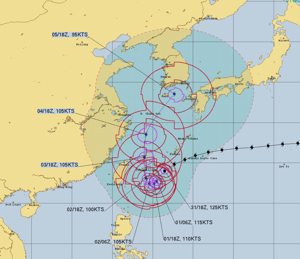 상하이 인근에서 최대풍속 초속 45~60미터의 매우 강한 태풍 예상