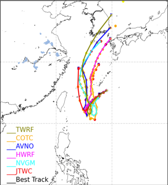9월 1~2일 타이완 동쪽 해역에 머문 후, 3일부터 북상 예상
