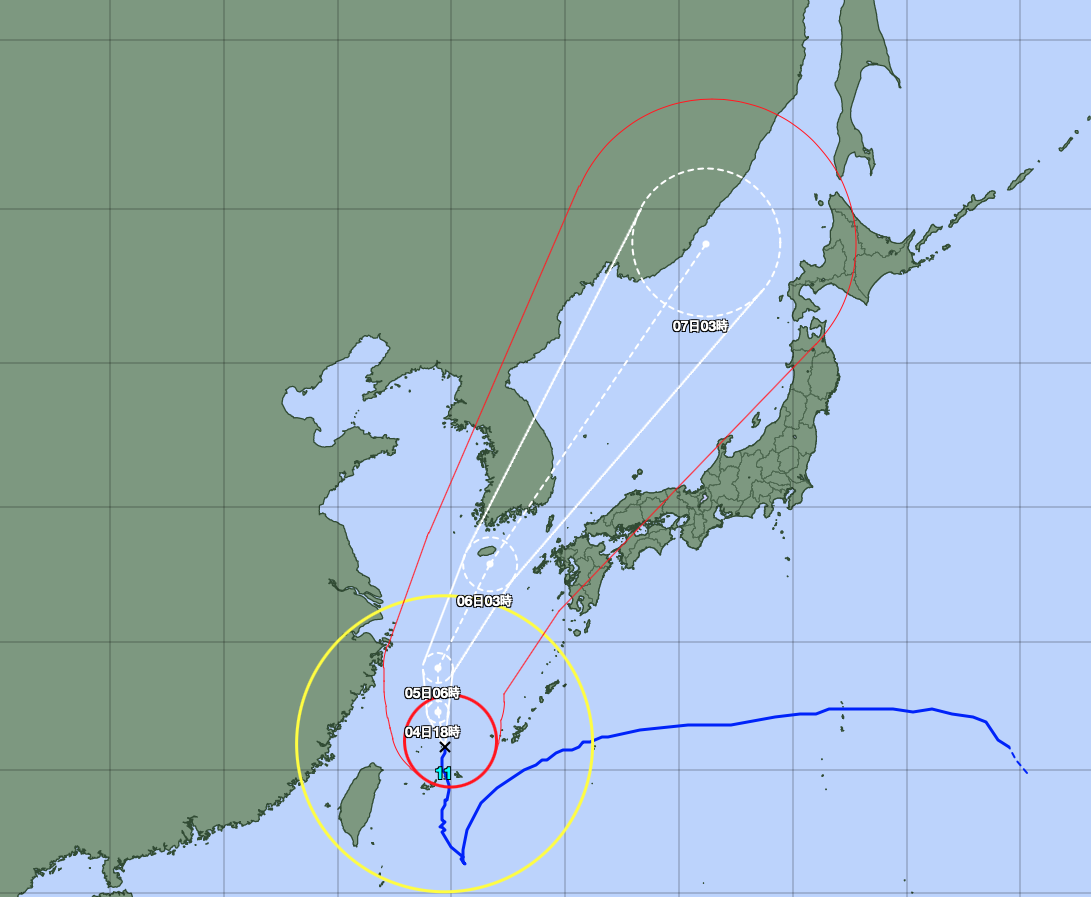 문제는 여기서부터입니다. 고위도로 올라오며 태풍의 에너지원이 되는 바닷물의 온도가 내려가고 이에 따라 태풍이 약해져야 하는데, 11호 태풍 힌남노는 9월 5일까지 얻은 위력을 그대로 유지한 채 제주도를 덮칠 것으로 전망됩니다. 일본기상청은 태풍 힌남노의 중심이 제주도 동쪽 해안을 통과할 것으로 예상하고 있는데, 제주도 전역이 태풍의 중심 통과 경로에 속해 큰 피해가 우려됩니다. 태풍의 중심이 제주도를 통과하는 시점은 9월 6일 화요일 새벽 3시 이후이며, 제주도는 5일 오후부터 6일 오후까지 태풍의 직접 영향권에 속하며 큰 어려움을 겪을 것으로 보입니다.