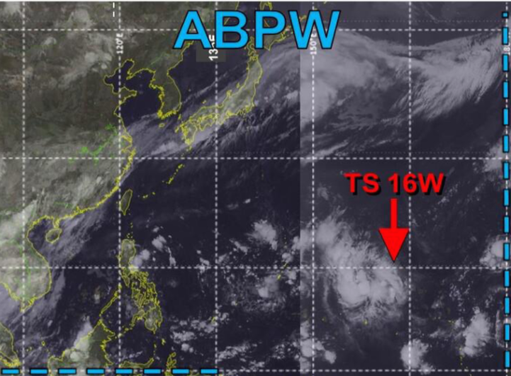 날짜변경선을 넘어와 생성된 열대저압부 TD16W가 서쪽으로 계속 이동 중이며 8월 16일, 12호 태풍 오마이스가 될 전망입니다.