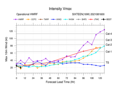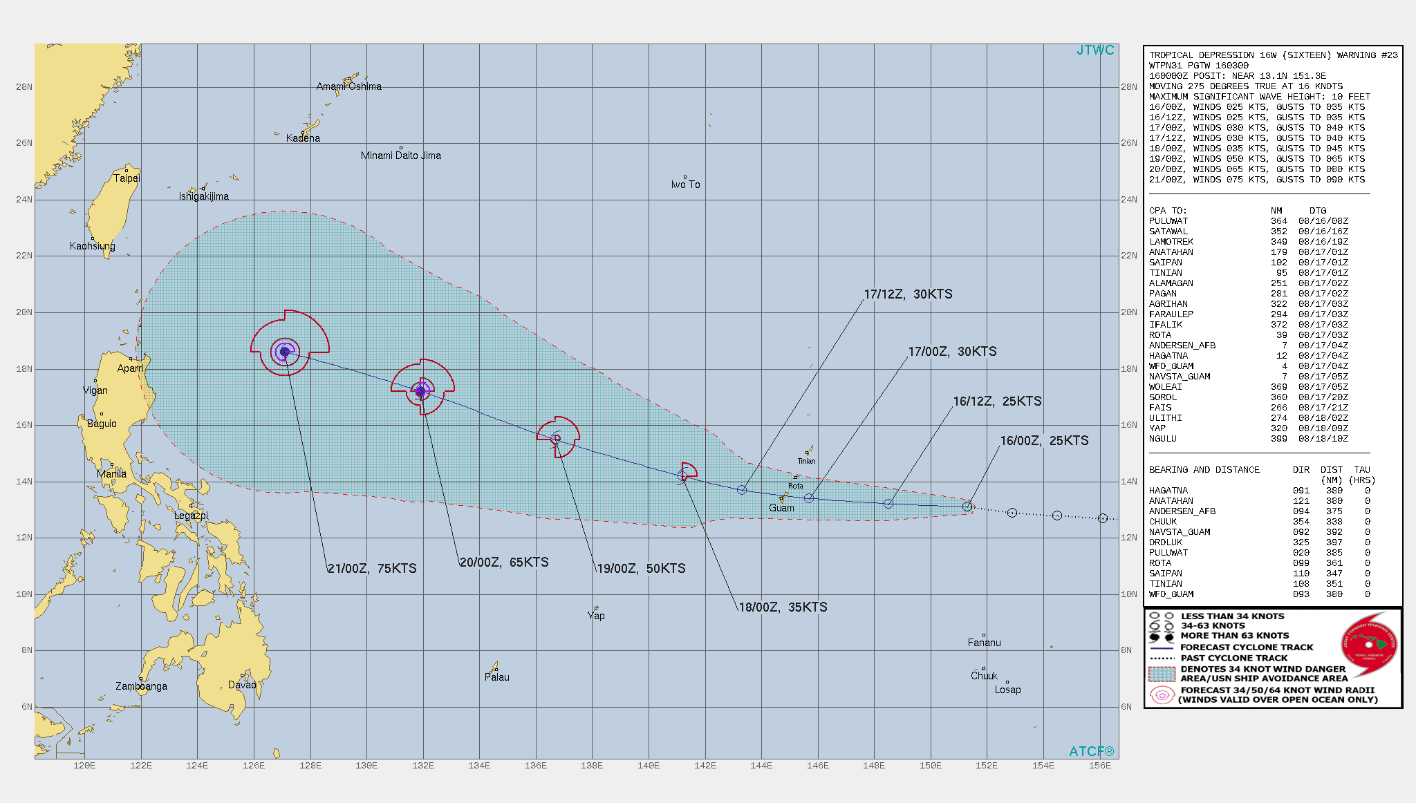 미국합동태풍경보센터 JTWC는 8월 16일 오후 3시 예보에서 기존의 예상진로를 유지했습니다.