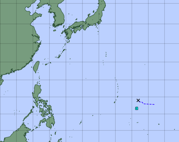 일본기상청의 태풍예보 창에 있던 태풍의 예상진로와 예상폭풍반경 표시도 모두 사라졌고 열대저압부a 는 X로 소멸 표시가 되어 있습니다.