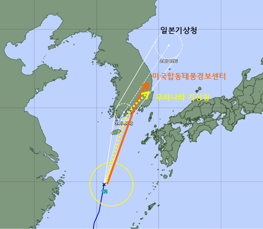 12호 태풍 오마이스가 지나갔습니다. 우리나라, 일본, 미국 3국의 기상예보기관 중 어느 기관의 예측이 가장 정확했을까요?