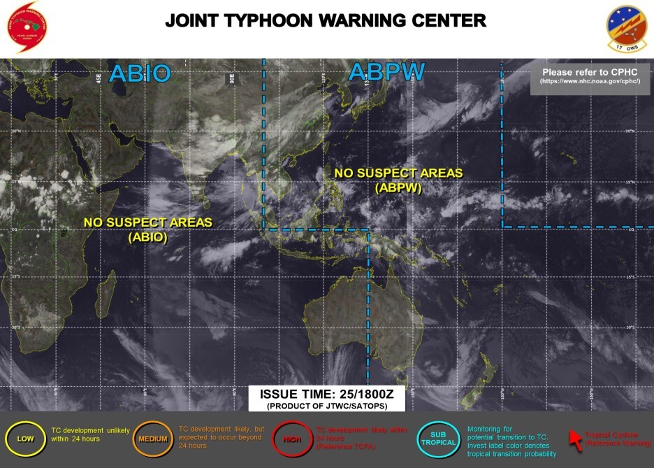 8월 26일 03시 기준, 미국합동태풍경보센터의 예보창이 깨끗합니다. 태풍은 물론 태풍의 전 단계인 열대요란, 열대저압부도 없습니다. 아시아 태평양 지역은 당분간 태풍 걱정 없는 평안한 시간을 보낼 수 있을 것 같습니다.