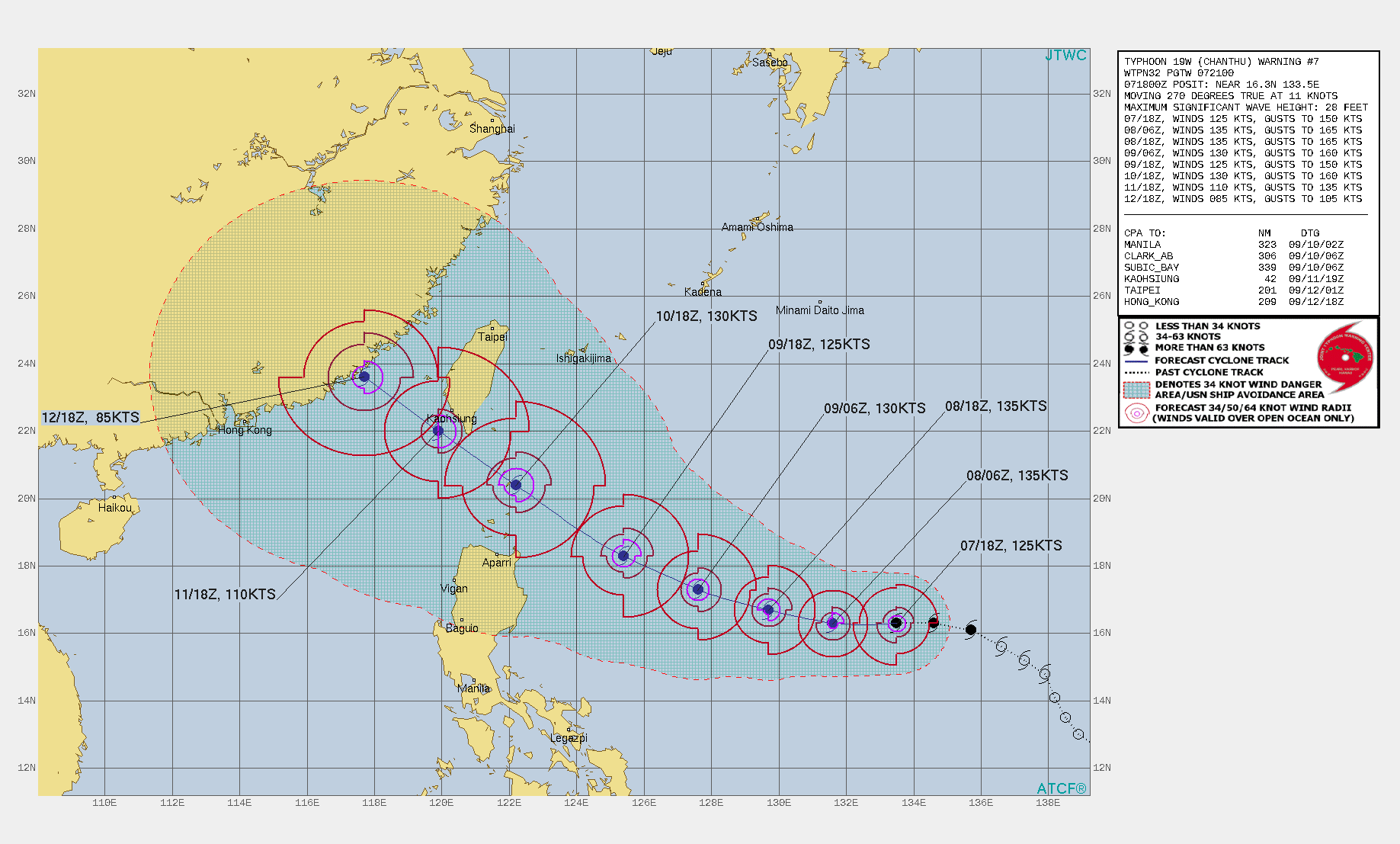 한편 14호 태풍 찬투는 슈퍼태풍의 이름을 얻을 가능성도 엿보일만큼 강한 태풍으로 발달하고 있습니다. 찬투는 태풍의 장해요인 거의 없는 따뜻한 바다 위를 지나며 급격히 발달하고 있으며 9월 11일 오후 타이완 가오슝을 직격할 가능성도 있습니다.
