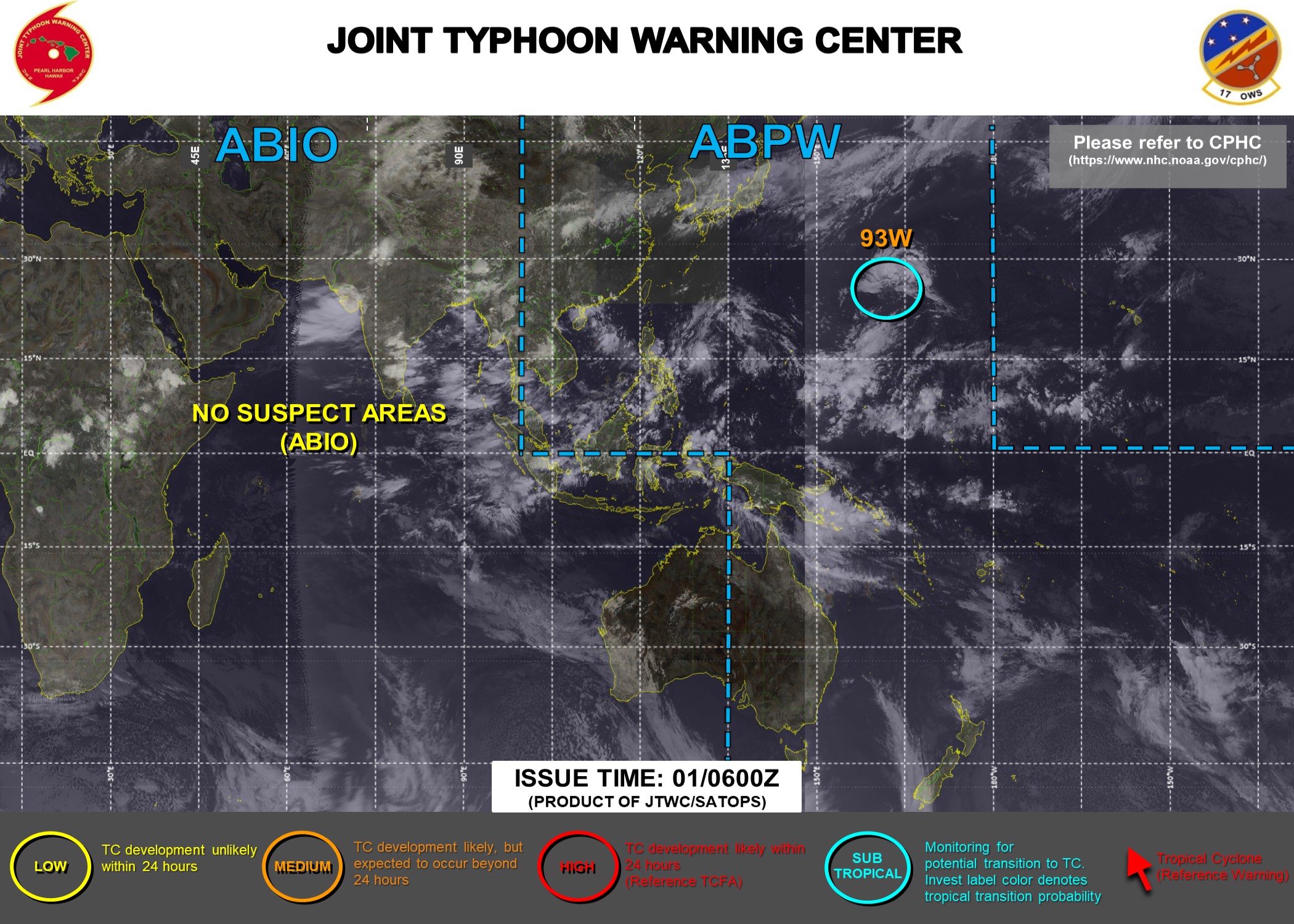 미국합동태풍경보센터는 9월 1일 오후 3시 예보에 아열대성 저기압 93W가 출현했음을 알리고 있습니다. 일본기상청의 예상일기도에 이미 반영된 내용이기는 합니다.