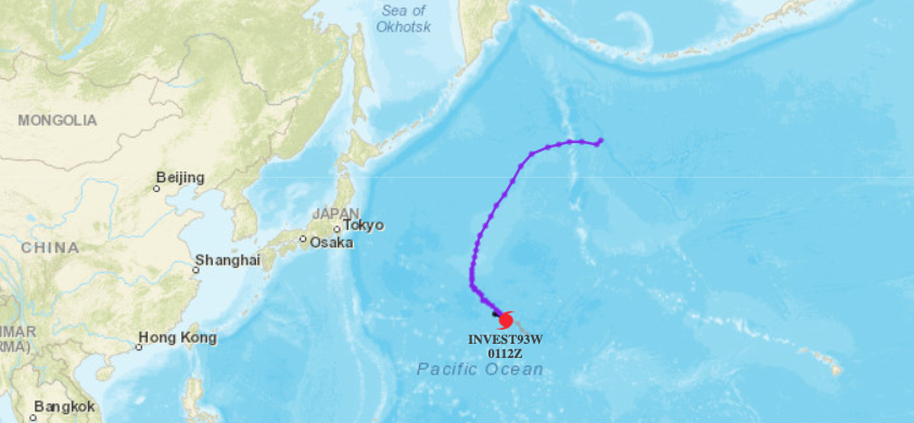 열대요란 93W는 태평양 먼바다를 항해하다 사라질 듯