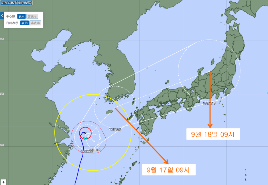 우리나라 기상청도 일본 기상청의 예보와 유사한 태풍진로를 예상하고 있습니다.