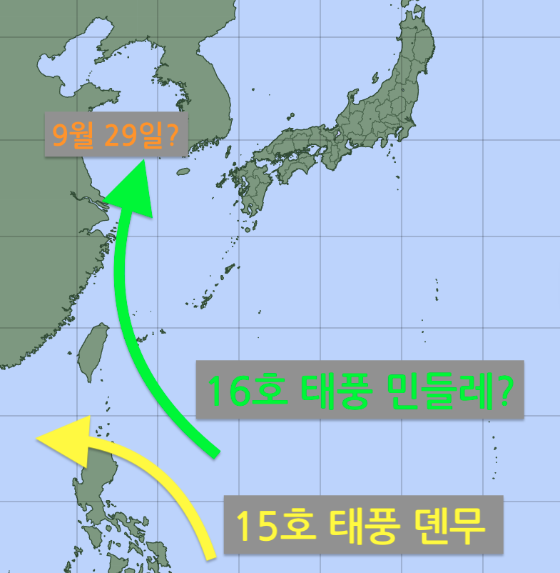 GFS태풍예측모델은 9월 17일 태풍 찬투가 지나간 후, 9월 말까지 2개의 태풍이 추가로 발생할 수 있음을 예측하고 있습니다. 9월 14일 예측 기준, GFS모델은 15호 태풍 뎬무는 필리핀 북부를 지나 동중국해로 진출하며, 16호 태풍 민들레는 타이완을 지나 우리나라 서해안으로 북상할 것이라는 예측을 내놓고 있습니다.