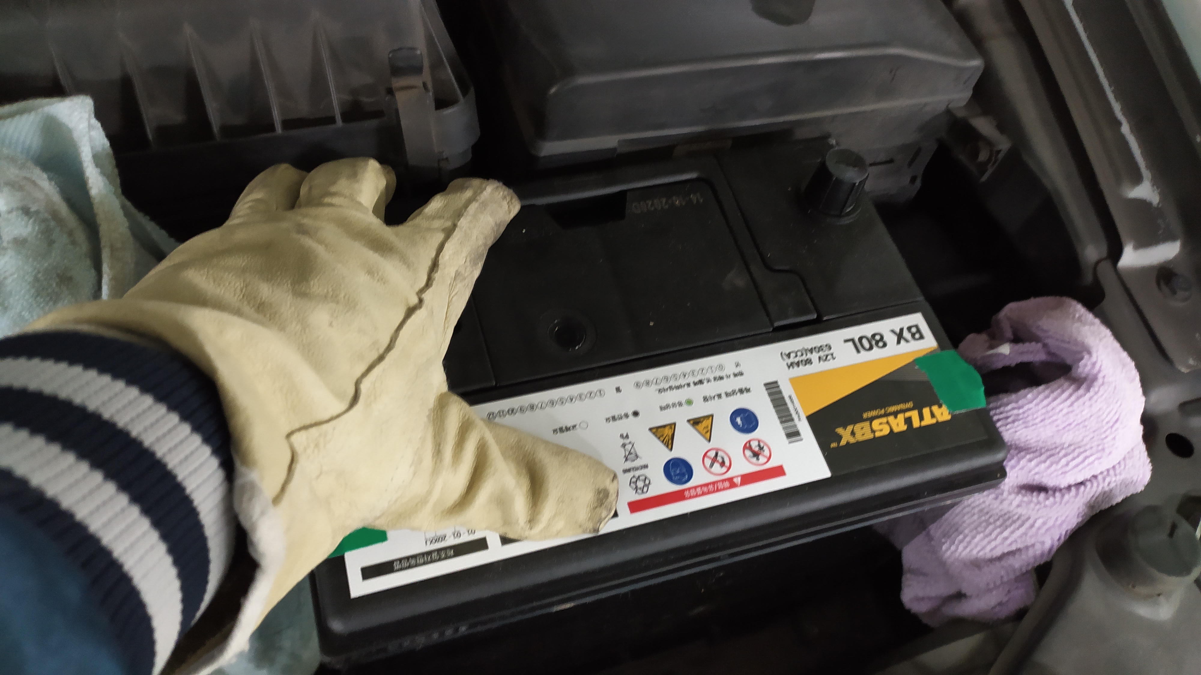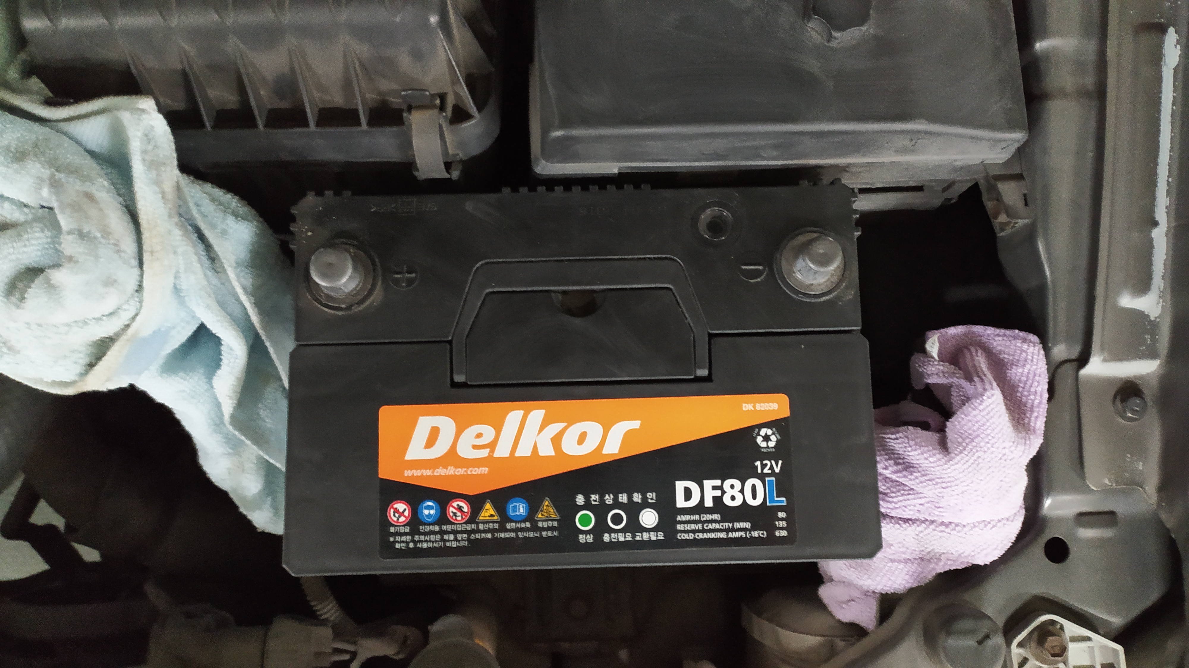 어렸을 적, 전기가 무섭다는 걸 몇 차례 경험한 후로 전기는 무조건 조심합니다. 배터리 판매점에서 보내준 설명서대로 -(음극) 단자를 먼저 분리해 세차 걸레로 싸놓고 +(양극)을 분리해 역시 세차 걸레로 잘 쌌습니다.