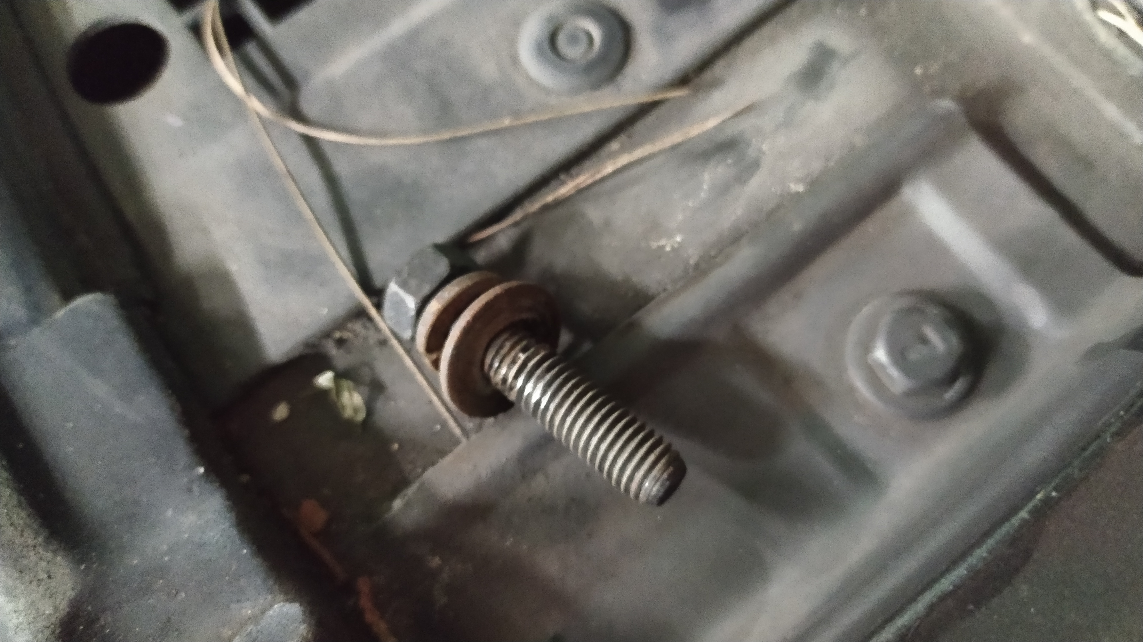 새 배터리가 차 안으로 올라갔습니다. 나사가 차 밑으로 떨어지지 않게 조심해서 끼우고 단단히 조여줍니다.