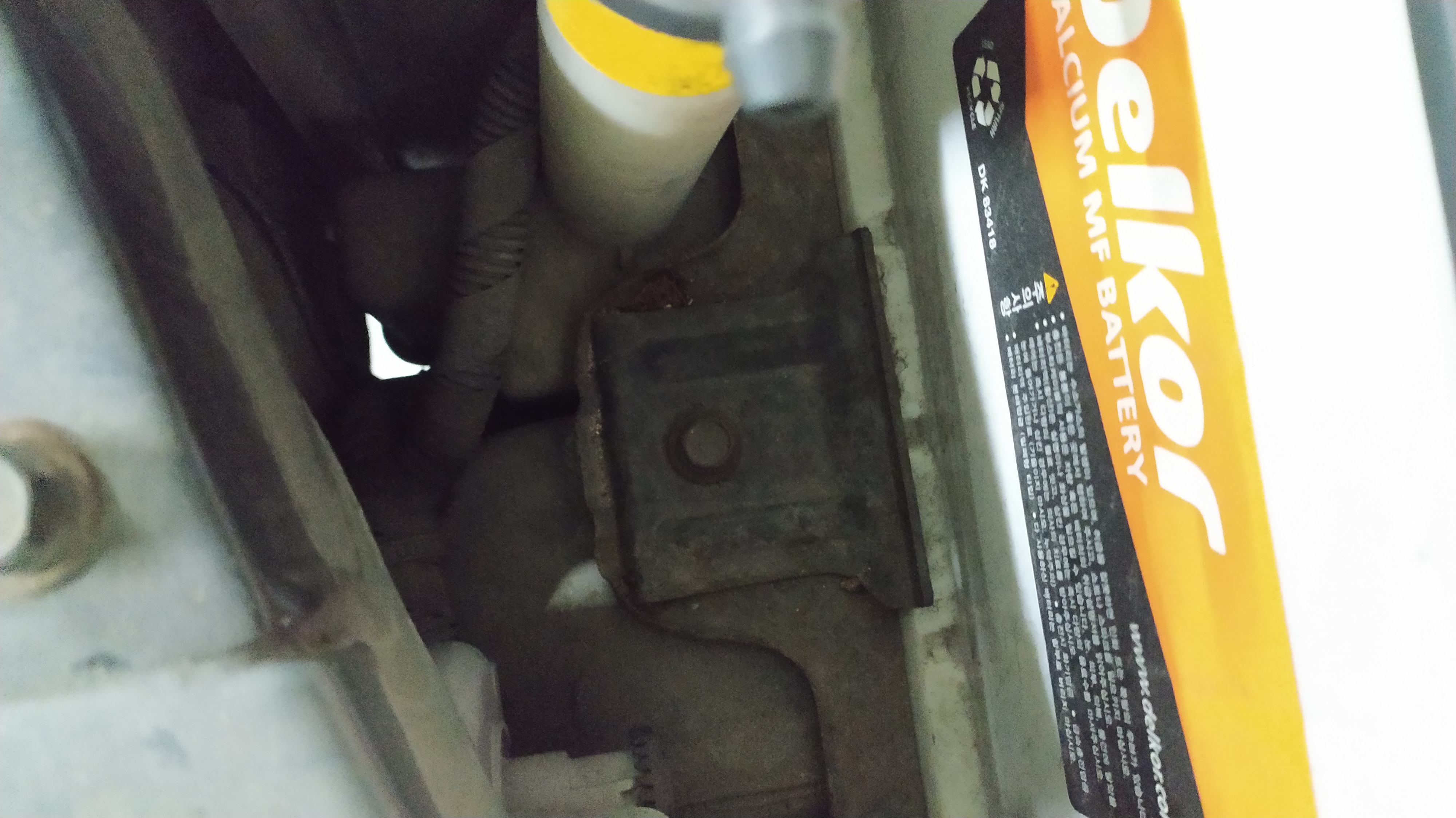 배터리 고정 볼트와 고정 플레이트를 풀었습니다. 배터리와 함께 온 연장을 이용하면 쉽게 풀립니다. 몇 년 전 쏘울의 배터리를 갈아봤는데 작업이 힘들었죠. ef소나타는 작업이 쉽습니다.