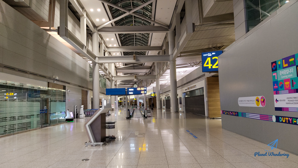 텅 비어있는 탑승게이트 안내 전광판이 고장난 게 아닌가 싶은 착각이 들 정도입니다. 면세점과 음식점은 대부분 문을 닫았습니다. 코로나 이전에도 8시 30분 정도면 마감을 시작하고 문을 닫기 때문에 에미레이트항공이나 에티오피아항공을 이용하는 경우 인천공항 면세점에서 곧바로 면세품을 사기 어렵습니다. 하지만 인터넷 면세점이나 시내 면세점에서 구입한 물건을 인도받는 건 가능하죠.