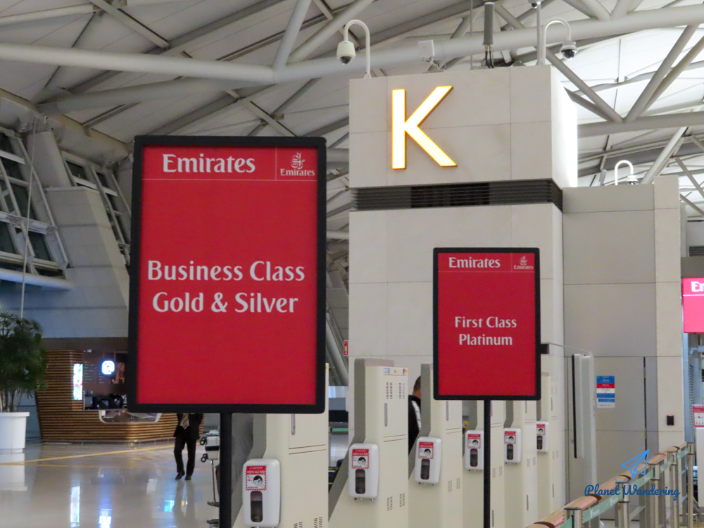 에미레이트항공은 온라인으로 체크인을 먼저 마친 승객들을 우대합니다. 비즈니스 클래스 카운터 옆에 오라인 체크인 승객들을 위한 카운터와 대기줄이 따로 있어서 온라인으로 미리 체크인을 했다면 짐을 부치는 수속 대기시간을 상당히 줄일 수 있어 좋습니다.
