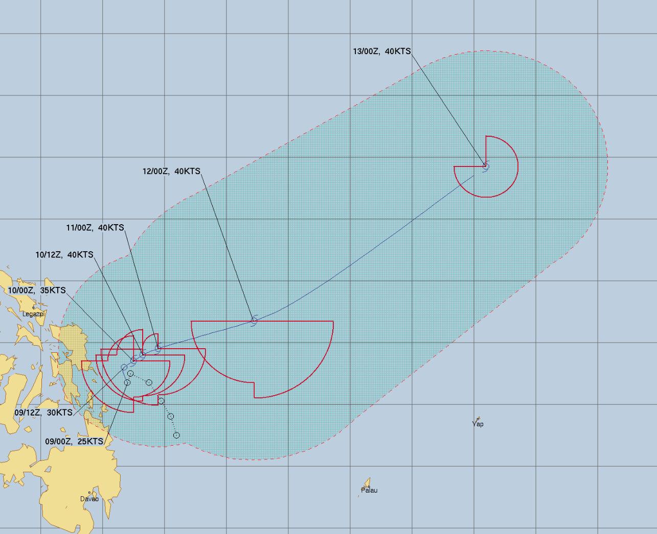 태풍의 강도에 대해서 JTWC는 최대풍속 초속 51미터 (100KTS)를 예상했으나, 이후 예보에서는 다소 감소한 초속 46미터 정도의 최대풍속을 예상하고 있습니다.