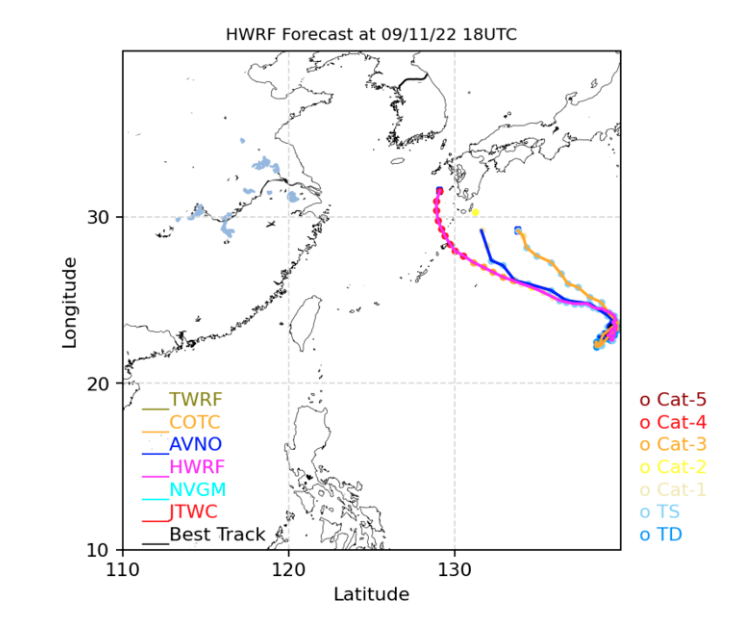 미국해양대기청 NOAA가 제공하는 HWRF 사이트의 여러 태풍예측모델들은 14호 태풍 난마돌이 일본 규슈를 향할 것으로 예측하고 있으며, 국내에 잘 알려진 기상예보 앱 윈디에 기상정보를 제공하는 유럽중기예보센터의 ECMWF 모델은 14호 태풍 난마돌이 대한해협을 통과할 것으로 전망하고 있습니다. 이 경우 우리나라 남부지방에 직접 영향이 예상됩니다.