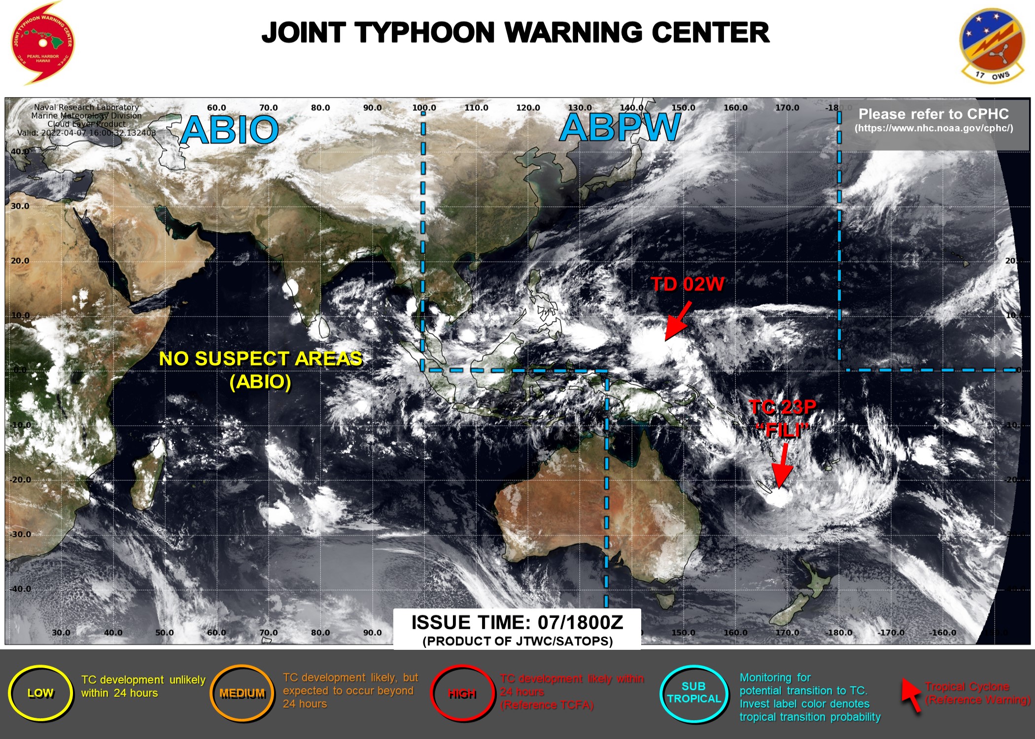 현재 열대저압부 TD 02W의 위치는 적도에서 약간 위쪽의 태평양 해상이며, 미국합동태풍경보센터 JTWC도 태풍 발달 직전인 열대저기압의 진로 예측을 시작했습니다.