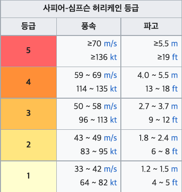 외신에 따르면, 2022년 전 세계에서 발생한 태풍, 허리케인 등 열대성 저기압 중 가장 강력한 수치를 기록한 11호 태풍 힌남노는 허리케인의 강도를 구분하는 사피어 심프슨 스케일 기준으로 2등급~3등급의 위력으로 우리나라에 상륙할 것으로 보입니다. 1904년 우리나라 기상 관측이 시작된 이후, 3등급 이상의 태풍이 우리나라에 100해리(185km) 이내로 통과하며 영향을 준 사례는 5건에 불과하며 1959년 태풍 사라 이후로는 2003년 태풍 매미가 가장 강력한 태풍이었습니다.