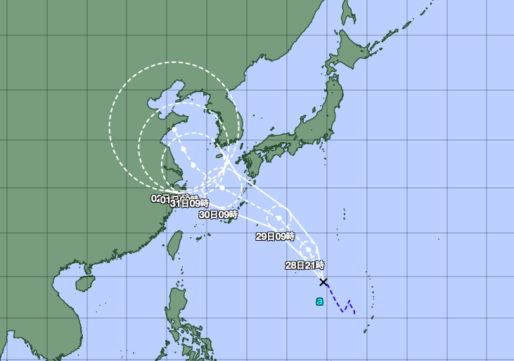 일본 기상청의 예보에 따르면 열대 저기압 a 는 북서쪽으로 북상하는 가운데, 29일 오전 5호 태풍 송다로 명명될 것으로 보입니다. 아시아 태평양 지역에서 발생하는 열대저기압을 태풍으로 판정하는 것은 일본기상청의 권한입니다. 열대저기압의 최대풍속이 초속 17미터를 넘어서면 태풍으로 인정을 받게 되는데, 5호 태풍 송다는 29일 오전에 최대풍속 초속 20미터를 넘어서며 5호 태풍 송다의 이름을 가져갈 것으로 예상됩니다.